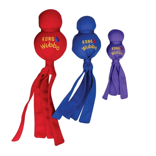 Der KONG Wubba ist ein wunderbares Motivations- und Wurfspielzeug. Zwei verschieden große Bälle sind mit einem äußerst strapazierfähigem Baumwollstoff überzogen. Die Quitsche und die langen Flatterbänder machen den KONG Wubba bei Hunden sehr beliebt. Auch ein ideales Motivationsspielzeug im Hundesport.
