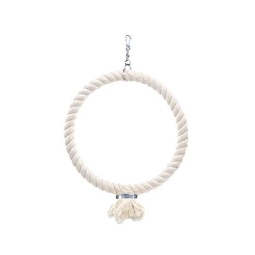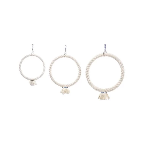 Hängen Sie den Ring in den Käfig Ihres Papageis oder Sittichs und bereiten Sie ihm viel Freude. Der Spielring ist aus fester Baumwolle und lässt sich mit einem Haken leicht befestigen; in verschiedenen Größen erhältlich.