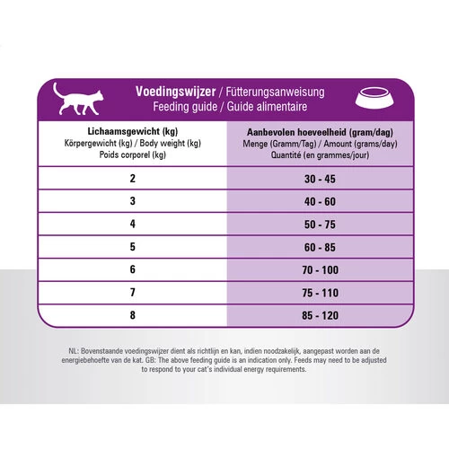 - Angepasster Energiegehalt mit zusätzlichen Ballaststoffen, um Ihre Katze auf einem gesunden Gewicht zu halten