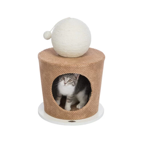 Das Trixie Relax Iglu mit Kratzbaum ist ein kompakter Unterschlupf mit einem Kratzball.